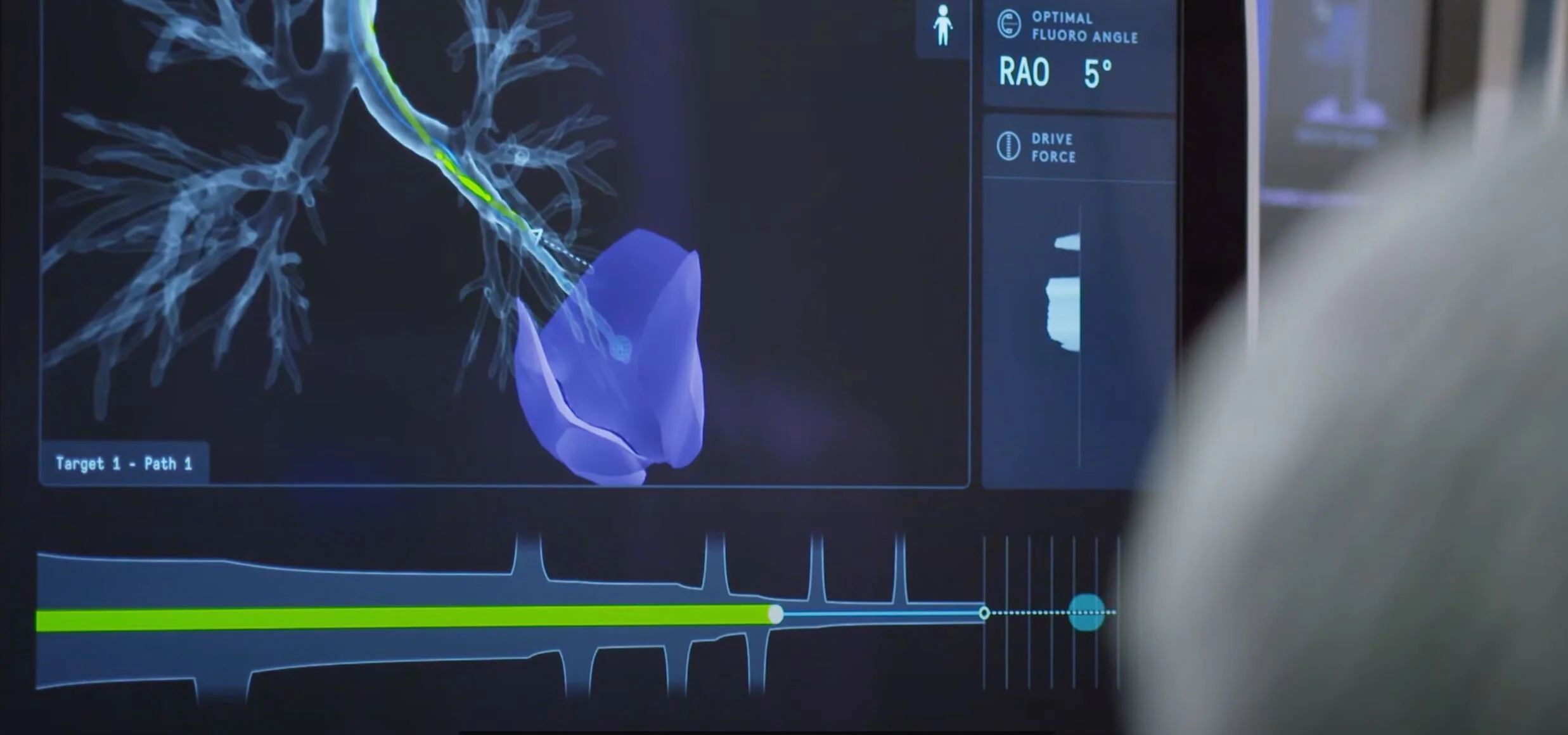 Portability and small footprint were key objectives so the system could be nimble enough to be placed in a standard bronchoscopy suite setup without requiring special accommodations. Our technology is designed to easily enter the room when required and leave the room when it is not. We also made sure to preserve the ability for the clinicians to work where they wanted to work—ensuring physical access to each other and to the patient. Using the Ion system does not mean standing off to the side with a piece of equipment.